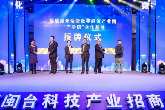 12月5日,在漳州市芗城区金峰众创园举办的芗城区闽台科技产业招商推介会暨漳州信息产业发展论坛活动上,芗城区委书记石振棋为我院与漳州信产投资有限公司“产学研合作基地”成功授牌。