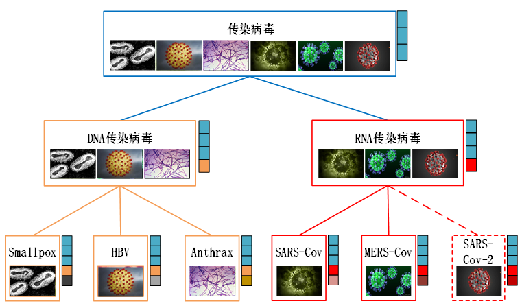 利用数据类别间层次结构关系进行分类学习任务广泛存在于疾病归类、图像标注、文本分类等领域。然而,分层分类学习面临着特征维度高、类别长尾分布、子类标注不充分、以及属性与决策间关联可解释差等挑战。近期,该团队针对上述挑战逐步展开研究,在CCF A类,SCI一区等期刊录用发表了多篇论文。这些成果的发表可有效用于分析传染病毒的预测与关联学习、中小学课业大数据分析等应用领域。