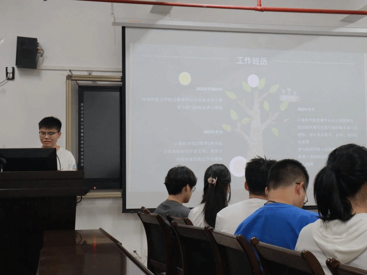 随后,在学生干部换届竞选大会上,候选人结合PPT,通过5分钟的竞职演讲,展示了自己对干部岗位的认知、未来工作规划和个人竞选优势等方面,同时以自己独特的见解和创新思维,展现出了他们在应对挑战和解决问题方面的能力和智慧。