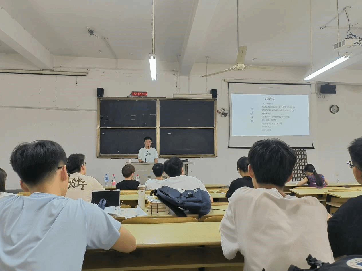 陈翔宇、陈伽芃、肖子涛三位同学,分别分享了择校、各科目学习、推荐备考书籍等考研相关经验。他们提醒同学,在选择好自己的目标之后就努力去实现,要坚持学习并且劳逸结合。他们的分享为正在备考的同学们选择目标院校及制定备考计划提供了有效参考。