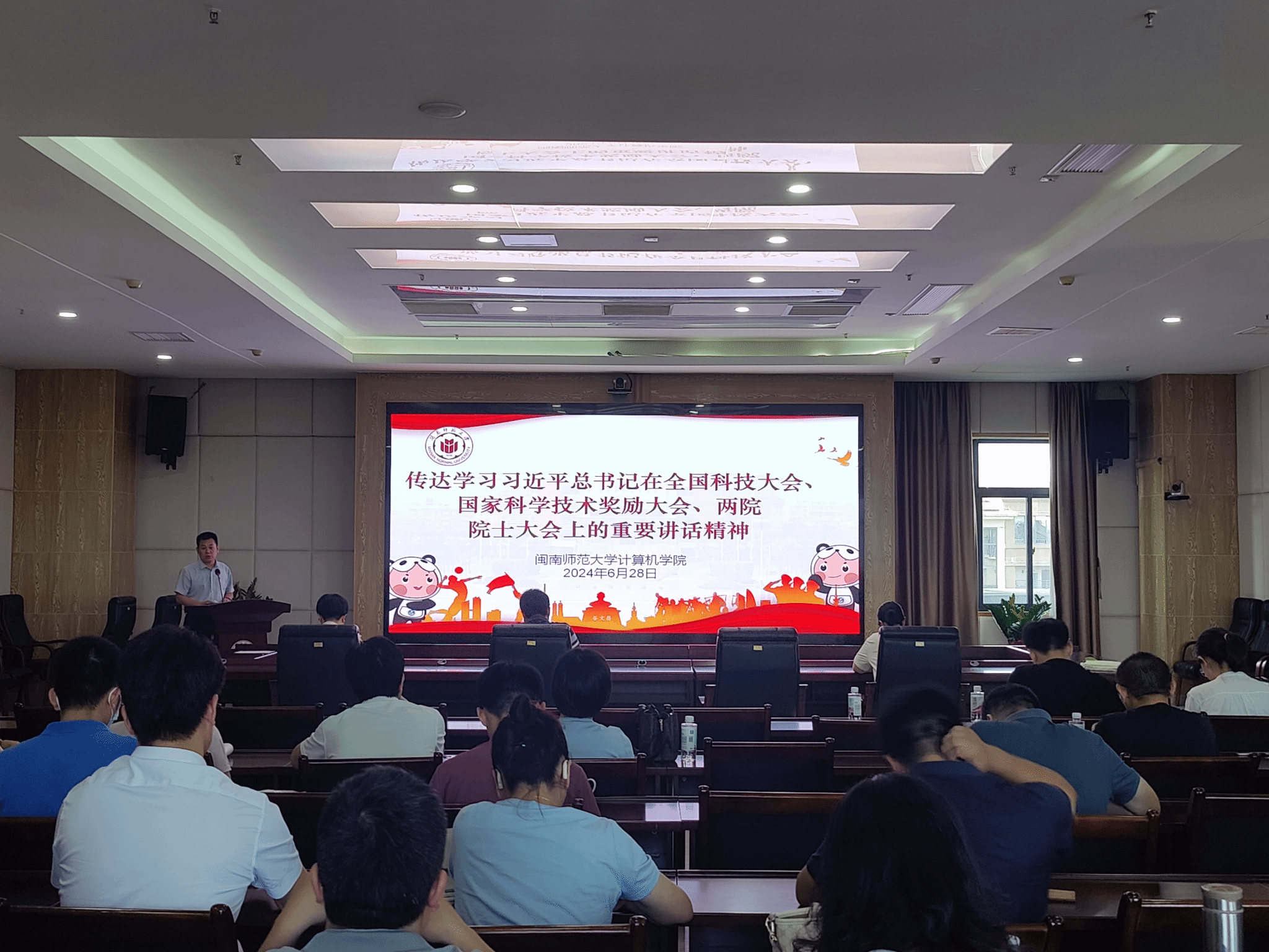 会上,学院党委书记祁超领学了习近平总书记在全国科技大会、国家科学技术奖励大会、两院院士大会上的重要讲话精神和习近平总书记在中共中央政治局第十五次集体学习时的重要讲话精神,传达通报校纪委(监察专员办)汇编的《高校违纪违法典型案例汇编》有关案例,开展师德师风警示教育,并对做好暑期校园安全稳定、党纪学习教育等工作作出部署;学院副院长周豫苹围绕期末考试各项收尾事项、省级以上各类教学项目、竞赛申报等工作进行动员部署,副院长黄慧就研究生期末考核材料提交、科研系统录入和2024年下半年项目结题等事项作出强调部署。