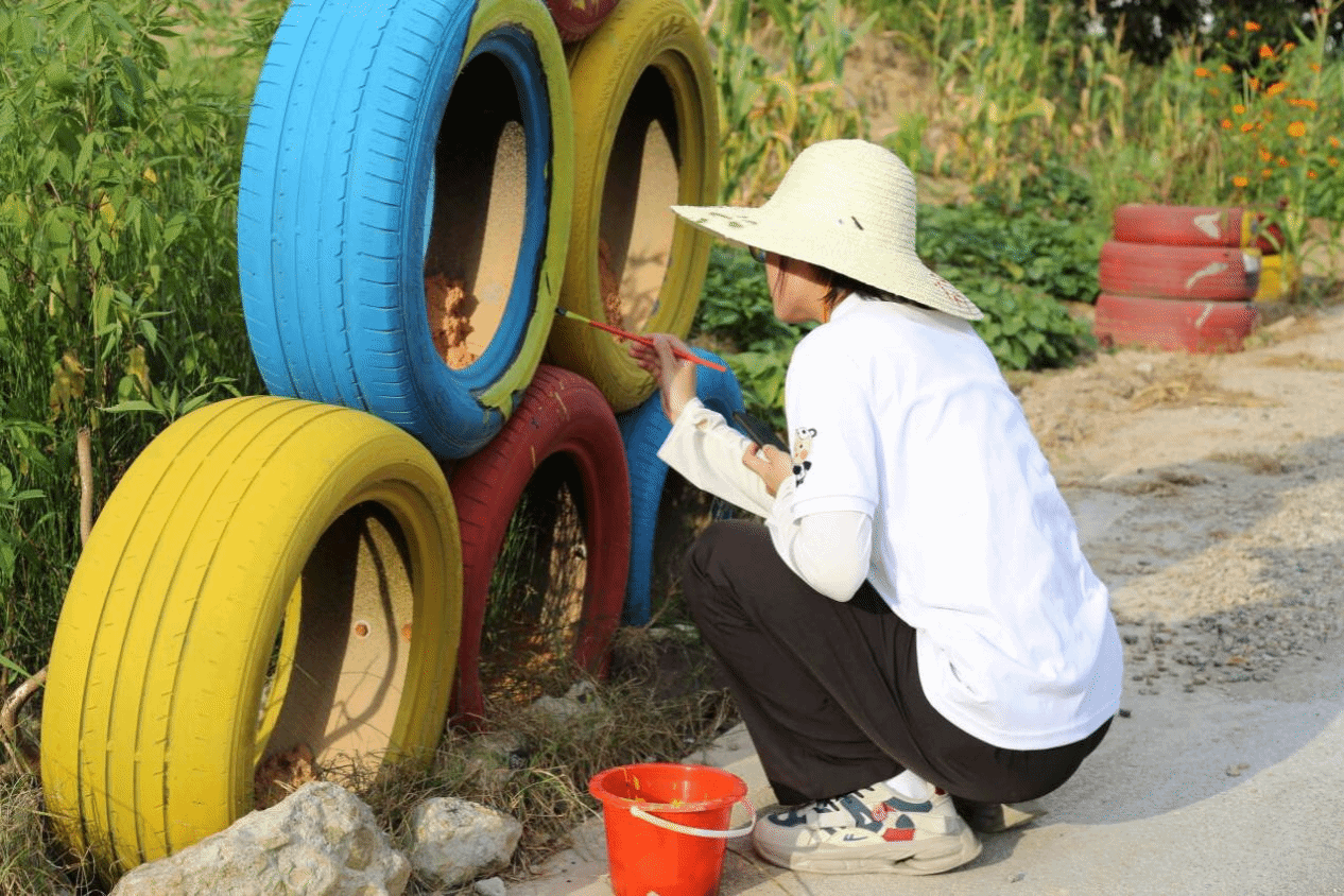 实践团成员纷纷拿起画笔,参与到马西村路边装饰轮胎绘制工作中,为乡村的美丽建设贡献一份绵薄之力。