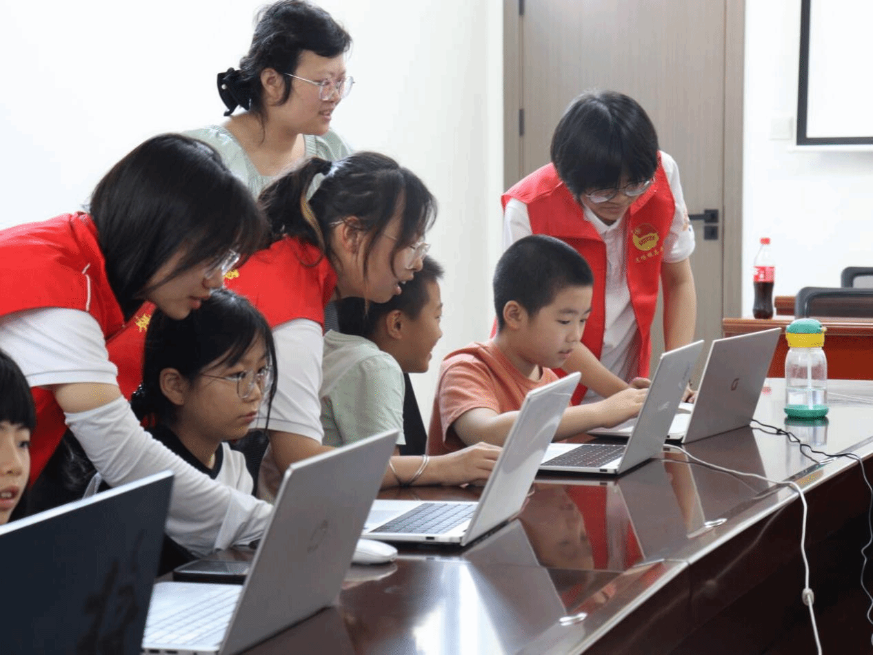 实践团成员发挥专业优势,在虹桥社区为适龄儿童开展基础编程教学活动。活动中,实践团成员带领小朋友们亲手编写代码、运行程序,激发了他们对计算机知识的浓厚兴趣,现场气氛热烈。通过生动有趣的课堂和一对一指导,小朋友们逐步掌握了编程的基本原理,体验到了编程的乐趣。