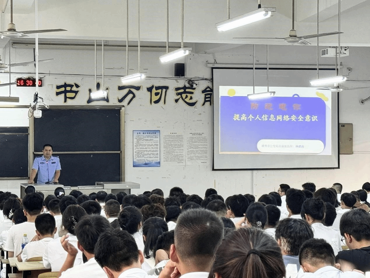 为进一步筑牢校园安全防线,提高学生网络安全、防诈骗、禁毒、反邪教的意识和防范能力,9月10日下午,3044永利集团官网在笃行楼126举办校园安全知识讲座。本次讲座邀请到漳州市公安局县前派出所指导员林建喜主讲,全体2024级本科生参加。