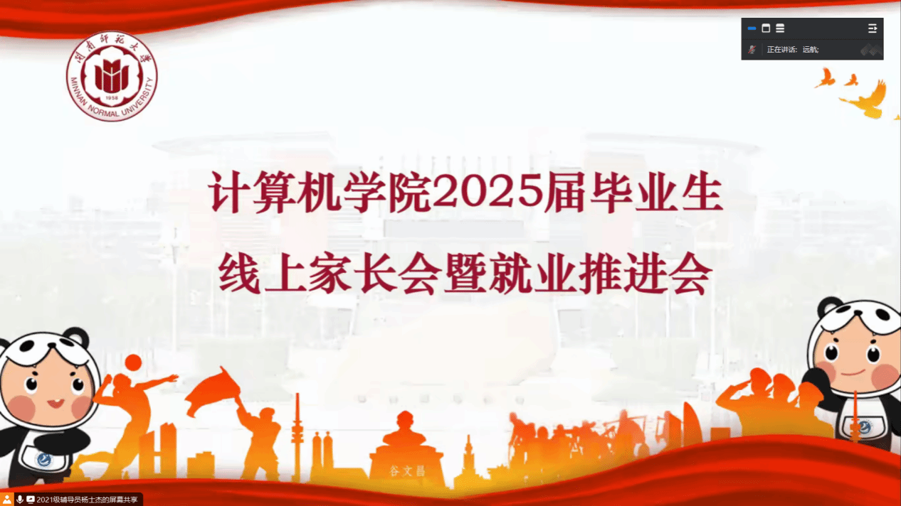 为强化家校协同,凝聚合力促进2025届毕业生高质量充分就业,1月17日下午,我院在科技楼北1106会议室召开2025届毕业生线上家长会暨就业推进会。学院党委副书记陈小玲、网络工程系主任魏葆雅、计算机工程教研室主任郑艺峰出席本次会议。会议由辅导员杨士杰主持,全体2025届毕业生及家长线上参加会议。