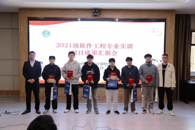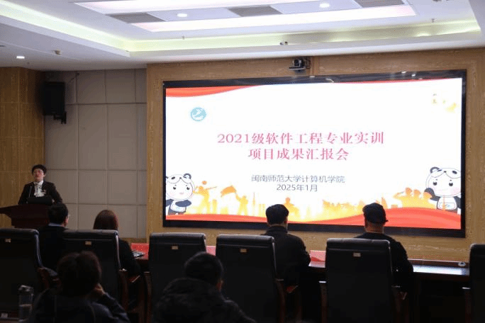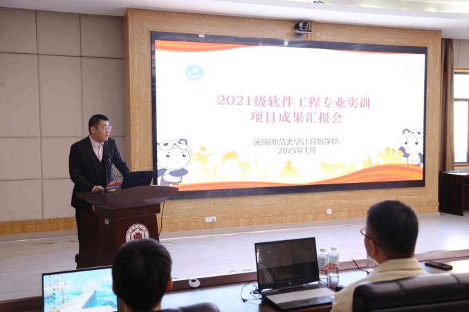 1月10日下午,我院与东软教育科技集团有限公司、福州榕智信息科技有限公司、厦门欧米克网络科技有限公司关于2021级软件工程专业实训项目成果汇报会在闽南师范大学科技楼1607会议室圆满举行。我院党委副书记陈小玲、副院长周豫苹、院长助理王育齐和辅导员杨士杰,以及实训企业代表出席此次成果汇报会。