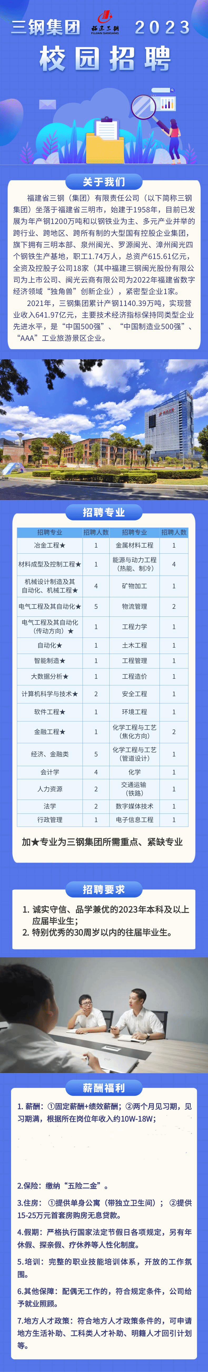 福建三钢集团三明本部2023届校园招聘正式启动!
