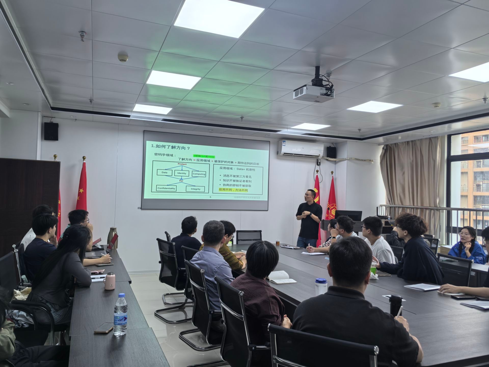 郭福春教授汇报的题目为“密码学研究生的论文写作指导”,首先,从“如何了解方向”、“如何啃透起点”、“如何掌握技巧”三个问题出发,分享密码研究的方法及如何进行密码领域的科学研究。通过“理想Paper与现实Paper的对比”探讨了如何写出第一篇学术论文,并给出了研究生导师如何对学生的研究给予指导的建议。最后“从Idea到Paper”的角度,分享了密码学研究的意义以及如何探寻密码学论文的创新点的方法。