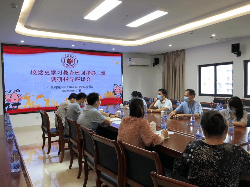 校党史学习教育巡回指导二组成员刘媛媛、邱仙艺,我院党委组织员陈小玲以及及教工党支部、学生党支部书记代表等参加调研座谈。