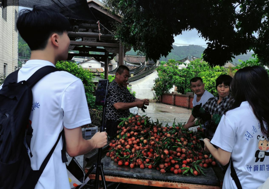 7月5日下午,在沈书记的带领下,实践团成员参观了后垅村。在实践团成员实地学习的同时,又以直播形式带动“云实践”,在线上与同学们一同感受后垅村的风土人情,领略乡村振兴的魅力,直播在线观看人数近千人。漳浦乌叶荔枝种植历史渊源悠久,六月底七月初正值荔枝采摘旺季,鲜果甜而不腻,味道清香,品质极佳。实践团成员来到荔枝园里,向当地村民了解荔枝的流转方式、规模经营、流转价格及收入水平等,同时在直播间与大家互动,分享采摘荔枝的乐趣,展示了当地人的淳朴与勤劳。