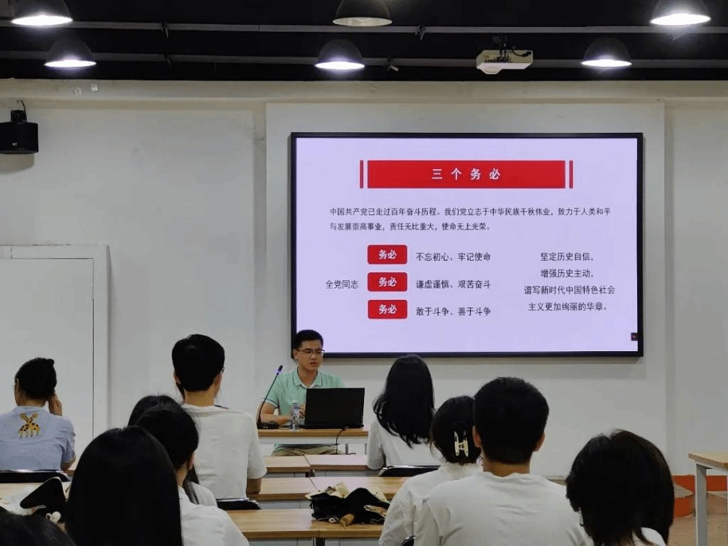 宣讲过程中,李伟俊老师向同学们强调了“三个务必”的重要性:“务必不忘初心、牢记使命,务必谦虚谨慎、艰苦奋斗,务必敢于斗争、善于斗争,坚定历史自信,增强历史主动,谱写新时代中国特色社会主义更加绚丽的华章。”