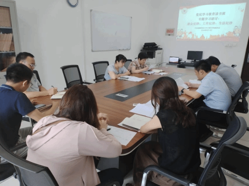 6月13日上午,3044永利集团官网党委在科技楼北1109会议室召开党委理论中心组(扩大)学习会暨党纪学习教育读书班第二次专题研讨会,学院党委书记祁超、副院长周豫苹、副院长黄慧分别围绕《中国共产党纪律处分条例》中如何严守群众纪律、工作纪律、生活纪律作重点发言。会议由学院党委书记祁超主持。