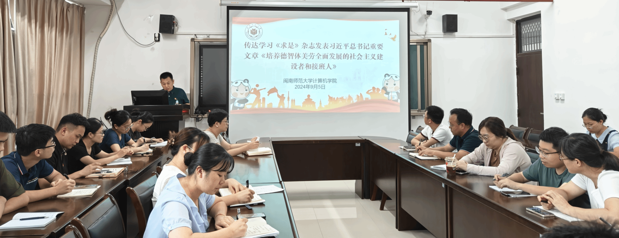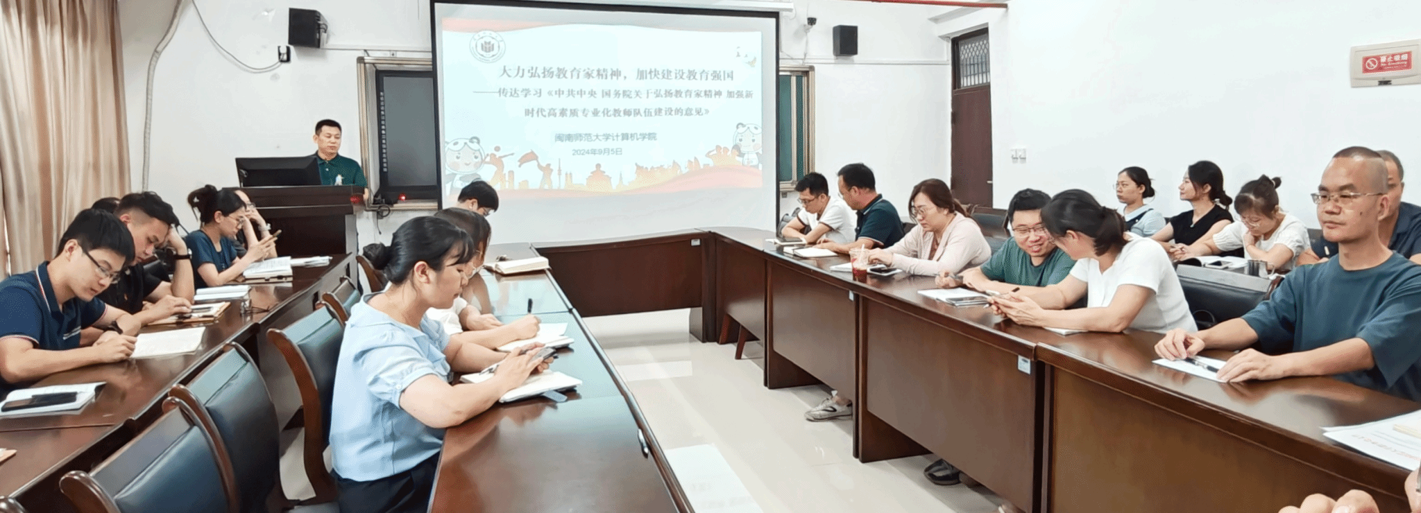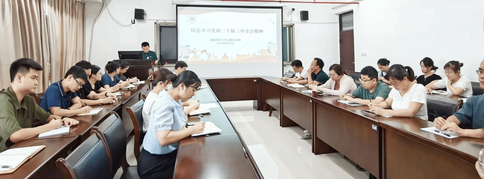9月5日下午,3044永利集团官网党委召开理论学习中心组(扩大)学习会,传达学习党的二十届三中全会精神、《求是》杂志发表习近平总书记重要文章《培养德智体美劳全面发展的社会主义建设者和接班人》《中共中央 国务院关于弘扬教育家精神 加强新时代高素质专业化教师队伍建设的意见》《中国共产党不合格党员组织处置办法》以及省委十一届六次全会精神。学院党委书记祁超主持学习会并部署贯彻落实要求。