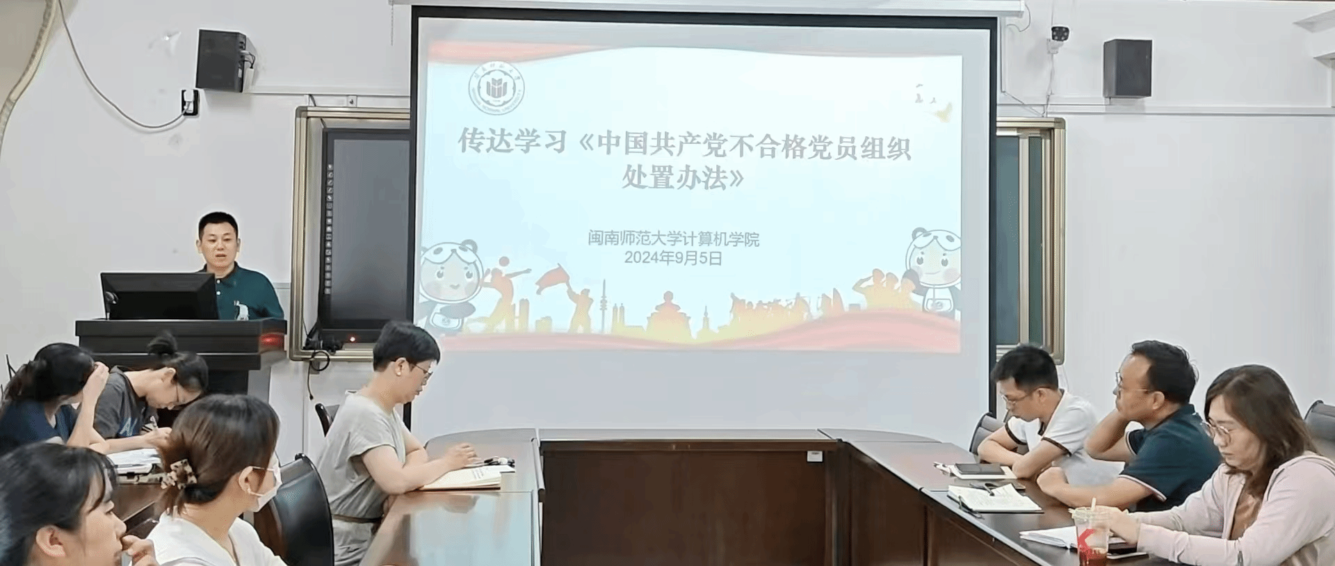 会议要求,要坚持不懈用习近平新时代中国特色社会主义思想铸魂育人,教育引导学生胸怀“国之大者”,厚植家国情怀,培养德智体美劳全面发展、堪当民族复兴大任的时代青年;要深入弘扬践行教育家精神,构建学院师德师风建设长效机制,营造尊师重教的良好校园风气,建设一支高素质专业化创新型教师队伍;要持续巩固党纪学习教育成果,推动全面从严治党向纵深发展,将政治监督贯穿学院事业发展全过程,积极配合落实学校巡视整改,加强学院自身工作全方位自检整改,引导全体教职工自觉严守“六大纪律”,切实把纪律规矩转化为政治自觉、思想自觉、行动自觉,自觉做遵规守纪的合格党员。