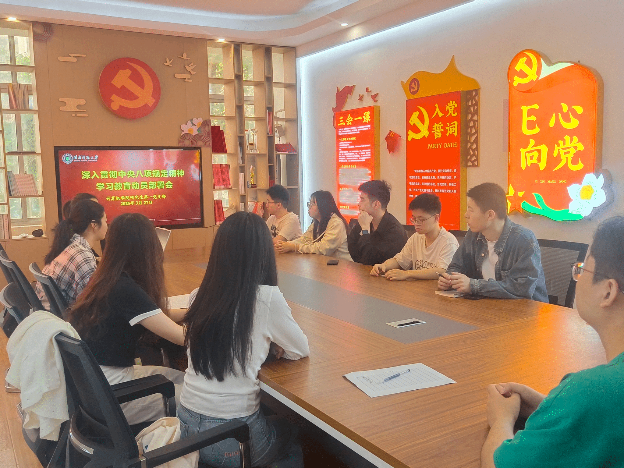 会后,学院10个党支部采取“三会一课”、主题党日等形式先后开展动员部署会,对深入贯彻中央八项规定精神学习教育作出安排,明确了工作重点,强化了目标任务。