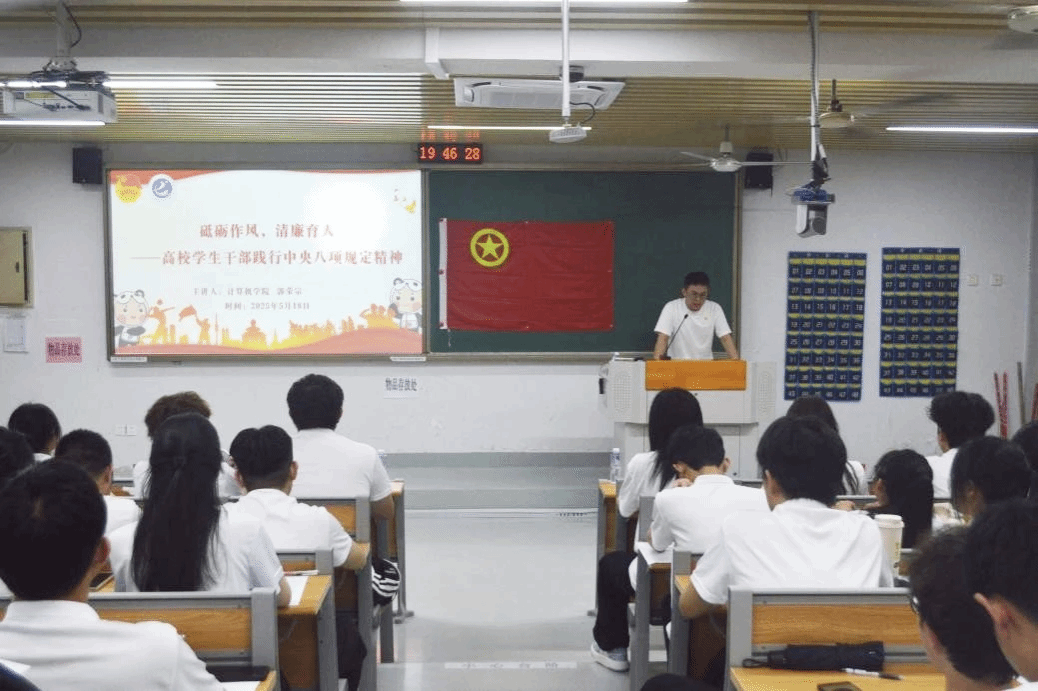 院团委负责人郭荣宗老师通过《深入贯彻中央八项规定精神学习教育》专题培训,从政治纪律、务实作风等多维度,强调高校学生干部践行方向,从成长路径、思维方法、素养修炼等角度,为学生干部提升素质、明确职责、开展工作指引方向。